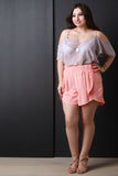 These lightweight plus size shorts featuring a flowy, smooth fabric, petal design at the front, and an elastic waistband. Accessories sold separately. Made in U.S.A. 100% Polyester.