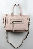 Textured Vegan Leather Zipper Trim Satchel Bag