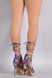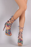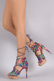 Qupid Tropical Cork Platform Peep Toe Heel