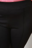 These plus size pants feature jersey knit fabric, wide elastic waistband, front seam and finished with taper cut legs. Accessories sold separately. 87% Polyester, 10% Rayon, 3% Spandex.
