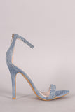 Denim Woven Ankle Strap Stiletto Heel