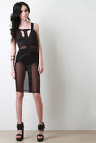 Sleeveless Semi-Sheer Mesh Midi Bodycon Dress