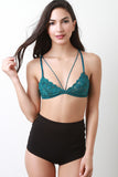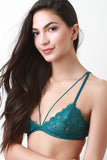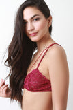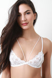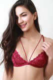This beautiful bralette features a semi-sheer floral lace fabrication, v-caged neckline, and adjustable bra straps. Accessories sold separately. 90% Viscose, 10% Spandex.