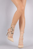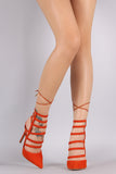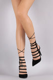 Shoe Republic LA Suede Caged Lace Up Stiletto Pump