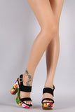 Bamboo Watercolor Print Slingback Chunky Platform Heel