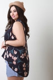 • Floral Chiffon Collar Button Up Sleeveless High Low Top