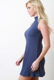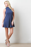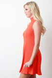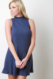 Sleeveless Ribbed Mock Neck Shift Dress