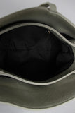 This box-shaped bag features textured vegan leather, stitched sides, double tassel straps, and top snap button closures. Interior features single zipper pocket and full lining. Bag is finished with adjustable removable shoulder strap (19" drop).