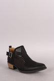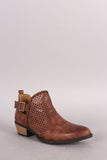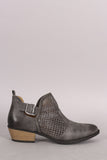 Qupid Perforated Suede Buckled Cowgirl Booties