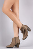 Qupid Suede Side Fringe Chunky Heeled Ankle Boots
