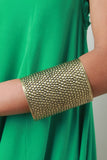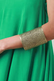This stylish cuff bracelet features burnished metallic frame, pebbled design, and open ends for easy on/off.