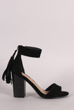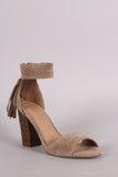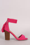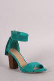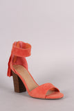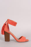 Breckelle Suede Tassel Ankle Cuff Chunky Heel