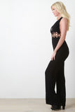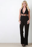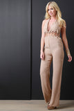 Textured Knit Halter Sleeveless Caged Midriff Jumpsuit