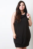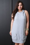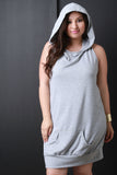 This plus size tunic features a crisscrossing back design with attached hood, sleeveless construction, front kangaroo pockets, and finished with cuffed hem. Accessories sold separately. Made in U.S.A. 60% Polyester, 40% Rayon.