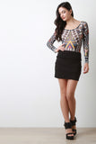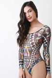 Geometric Long Sleeve Backless Mesh Bodysuit