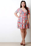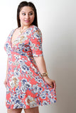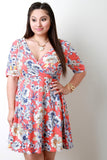 Floral Print Deep V Surplice High Waist Dress