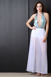 This bodysuit features iridescent metallic vegan leather, deep plunge neckline, and halter tie. Accessories sold separately. Made in U.S.A. 94% Polyester, 6% Spandex.