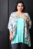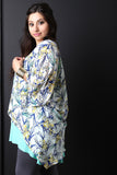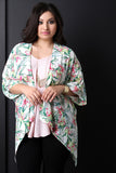 Floral Handkerchief Hem Short Sleeve Kimono