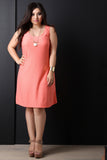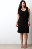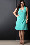 This plus size dress features a textured pattern knit fabrication, scoop neckline, sleevless fit, and finished with a midi-length hemline. Accessories sold separately. Made in U.S.A. 95% Polyester, 5% Spandex.