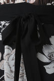 This casual dress features  a deep v neckline, open back, floral print pattern, chiffon fabrication, button and snap wrap closure, dolman sleeves, contrast wait with removable tie belt, high low hem, and a half lining. Accessories sold separately. Self: 100% Polyester. Contrast: 100% Rayon.