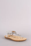Rhinestone T-Strap Elasticized Slingback Flat Sandal