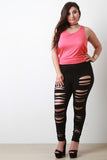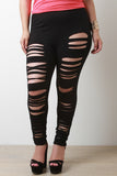 These plus size leggings feature a jersey knit fabrication, distressed razor cut details at front, elasticized waist band, and taper cut fit. Accessories sold separately. Made in U.S.A. 95% Cotton, 5% Spandex.