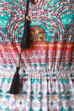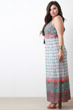 Patterned Print Cinched Waist Sleeveless Maxi Dress