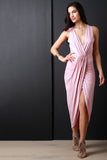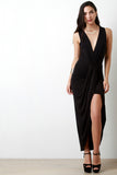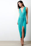 Surplice Wrap V-Neck Gathered Center Dress